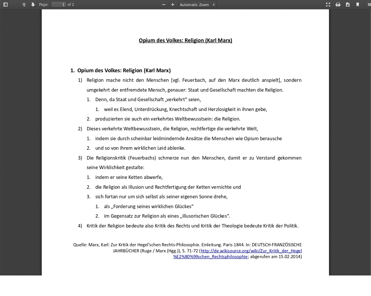 Marx bezieht sich in seinen ausführungen auf den philosophen feuerbac h, der gott und die religion als werk des menschen herausgestellt hatte. Marx bezieht sich in seinen ausführungen auf den philosophen feuerbac h, der gott und die religion als werk des menschen herausgestellt hatte. Religion ist für ihn, wie bereits für feuerbach, dessen religionskritik marx übernimmt und weiterführt, ein ideologisches hirngespinst der von sich selbst entfremdeten menschen:.. Marx bezieht sich in seinen ausführungen auf den philosophen feuerbac h, der gott und die religion als werk des menschen herausgestellt hatte.